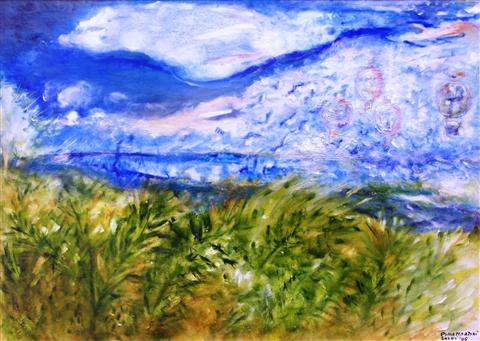 Mongolfiere - encausto su tavola - 60x83