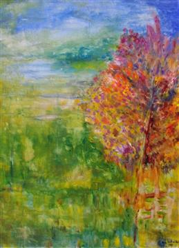 Paesaggio autunnale 2 - encausto su tavola - 60x70